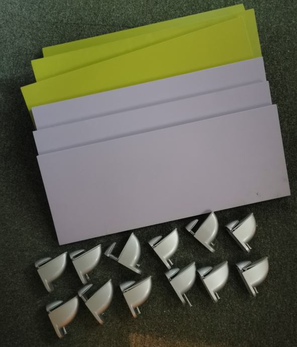 6 kosov polic s pripadajočimi nosilci za pritrditev v steno 12 kos. Cena za komplet.