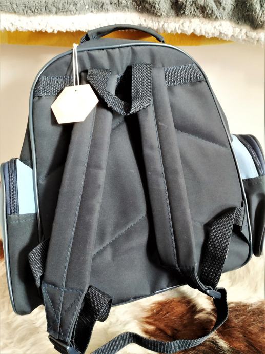 V višino meri 34cm, dolžino 27cm, oz. 32cm skupaj s stranskimi žepi, ter v širino 11cm.