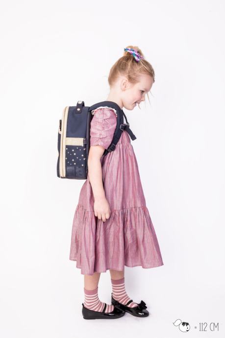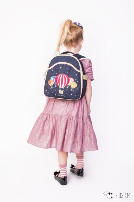 Model na sliki je Milla, visoka je 112 in nosi Backpack Ralphie Balloons.