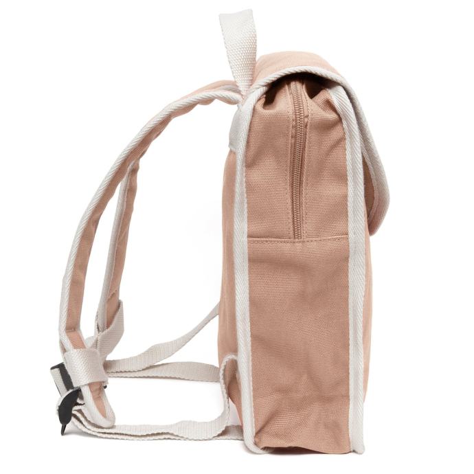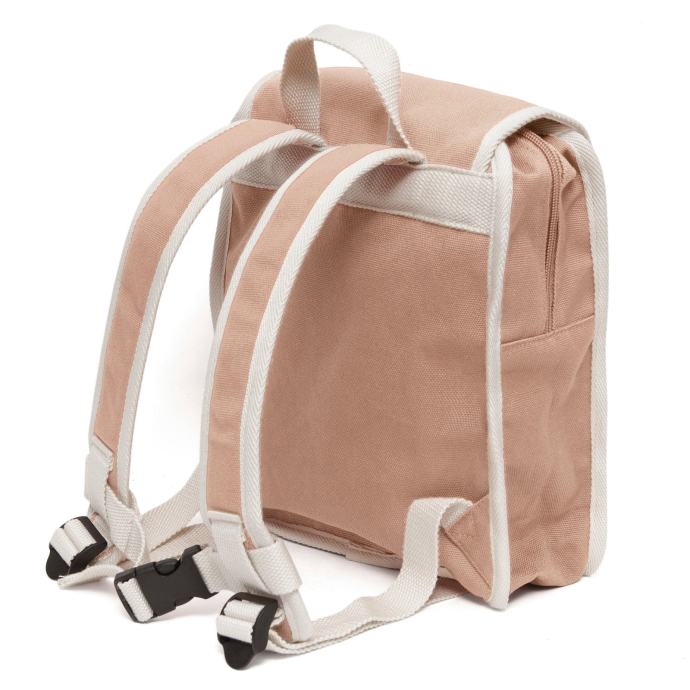 Otroški nahrbtnik Recycled Cotton Backpack blagovne znamke Petit Monkey v zemeljskih barvah je izdelan iz recikliranega bombaža, obrobljen z robovi iz naravne tkanine in detajli iz umetnega usnja. Glavni predal te nežno roza torbe za malčke se zapira na zadrgo, prekriva pa ga pokrov pod katerim je skrit magnet za zapiranje. Naramnice so nastavljive, prsni pas pa zagotavlja dodatno udobje pri nošenju.