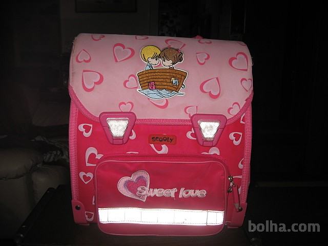 Prodam dobro ohranjeno šolsko torbo za prvo triado Scooly. Nošena je bila dve leti. Ima odsevne trakove, ojačane robove, dodatne žepe za drobnarije,