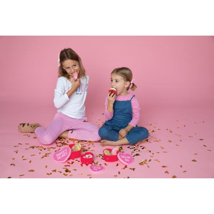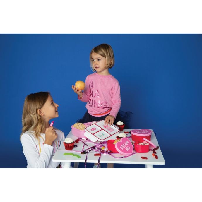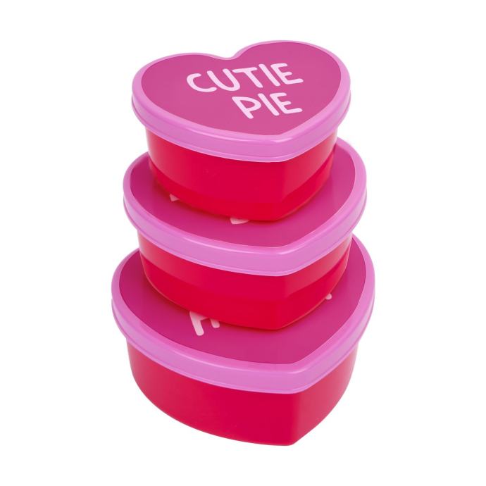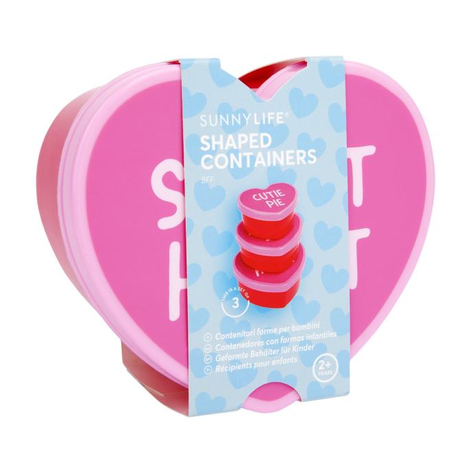 Komplet 3 otroških posodic za shranjevanje hrane Sunnylife je estetsko oblikovan v obliki srčkov in s prikupnimi napisi na pokrovčkih. Otroci bodo tako lahko svojo malico odnesli v vrtec, šolo ali na izlet in jo pojedli svežo.