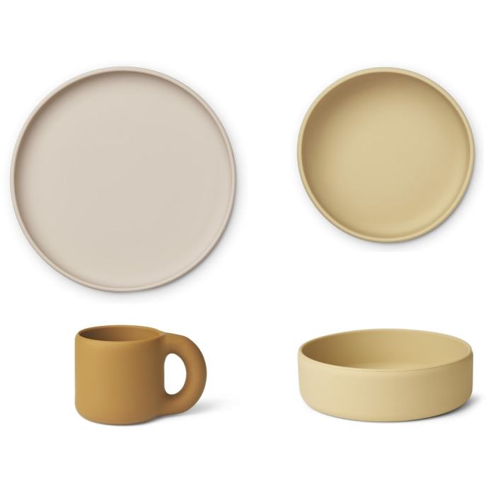 Otroški jedilni set Liewood Andie Junior Set je idealen za uporabo pri vseh obrokih in drugih prigrizkih. Komplet vsebuje: plitev krožnik, skledico in skodelico z ročajem.