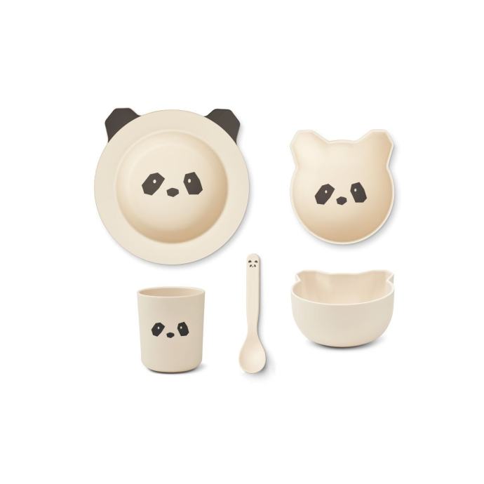 s prikupnim motivom pande je idealen za uporabo pri vseh obrokih in drugih prigrizkih ter vsebuje: globok krožnik, skledico, kozarček ter jedilni pribor žlico.