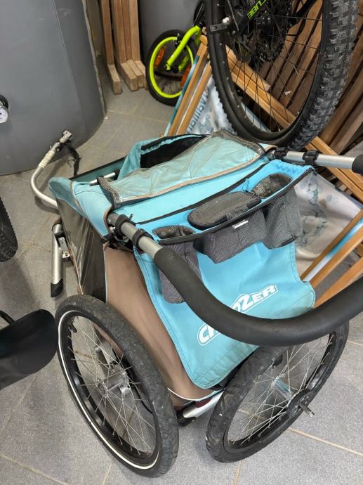Prodam prikolico croozer za prevoz otroka priklop na kolo. V kompletu tudi tretje prednje kolo.