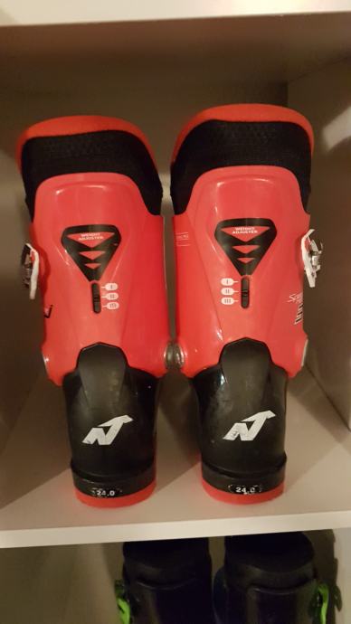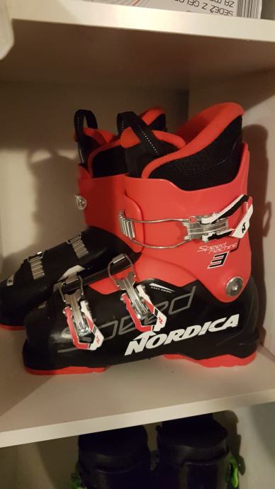 Prodam zelo kvalitetne in zelo malo rabljene smučarske čevlje NORDICA Speed Machine 3, črno rdeče barve. Velikost čevlja je 24 do 24,5 cm, kar ustreza velikosti stopala 38-39, dolžina celotnega čevlja znaša 285 mm.