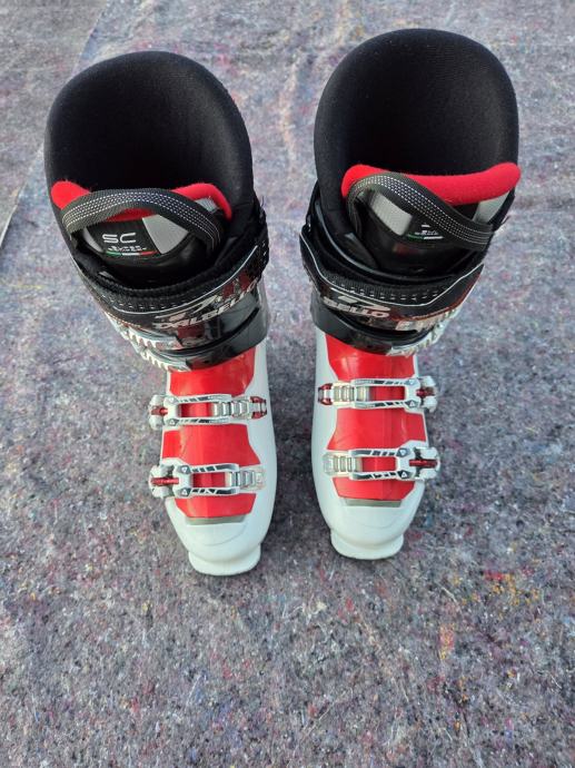 Prodajam rabljene mladinske smučarske čevlje Dalbello P4 velikosti 42, primerni za otroke z večjo številko noge. Pancerji so v dobrem stanju, z udobno notranjo podlogo in zanesljivim zapiranjem s štirimi sponkami. Idealni za mlade smučarje, ki želijo kakovostno opremo za zimske radosti na snegu.