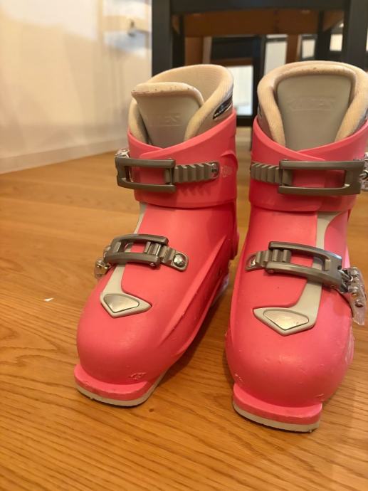 Prodajam rabljene otroške smučarske čevlje Roces v roza barvi. Čevlji so nastavljivi in primerni za starostno skupino otrok z velikostjo noge od 30 do 35. Zelo lepo ohranjeni.