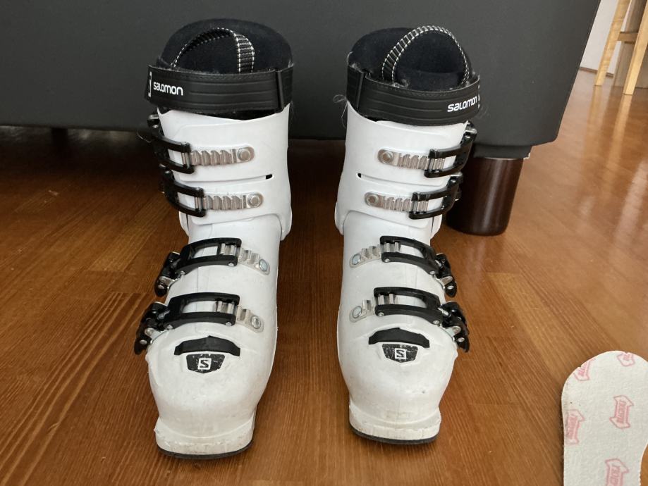 Otroški Salamon smučarski čevlji velikost 38-39 ( 24-24.5). Nošeni 2 sezone cca 14 smučarskih dni. 031 35 48 49.