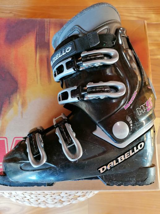 Prodajam rabljene otroške smučarske čevlje znamke Dalbello velikosti 39 za dolžino stopala 255 mm.