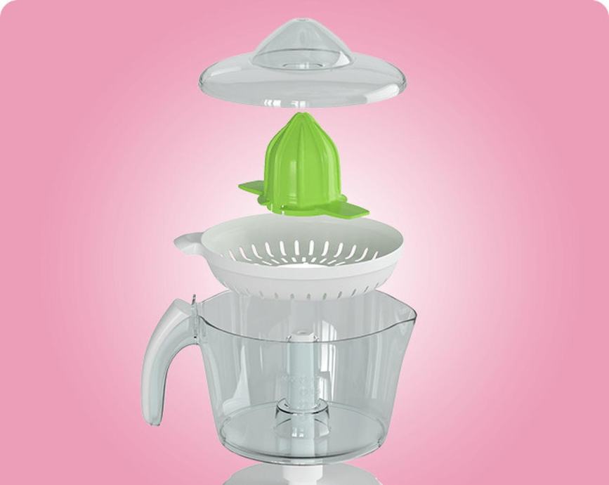 Preprosto priključite napajalni kabel, na ožemalni stožec pritisnete citrus po vaši izbiri, vse ostalo pa prepustite Tesla ožemalniku in njegovemu dvosmernemu sistemu vrtenja. Naprava se samodejno aktivira, ko pritisnete, zato ne potrebujete pritiskati nobenih gumbov.