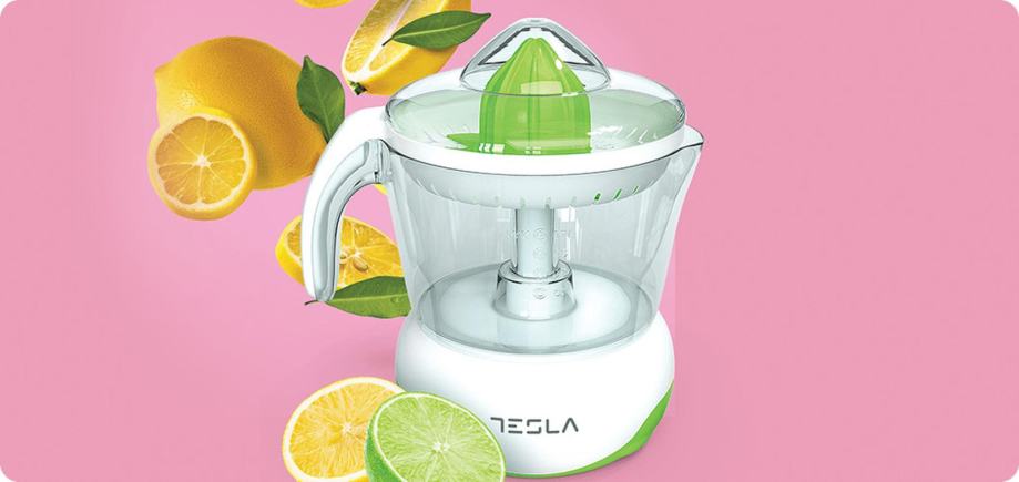 Hitro pripravljena limonada, svež pomarančni ali grenivkin sok? S Tesla ožemalnikom citrusov z dvema različnima velikostima ožemalnih elementov, to ni problem.