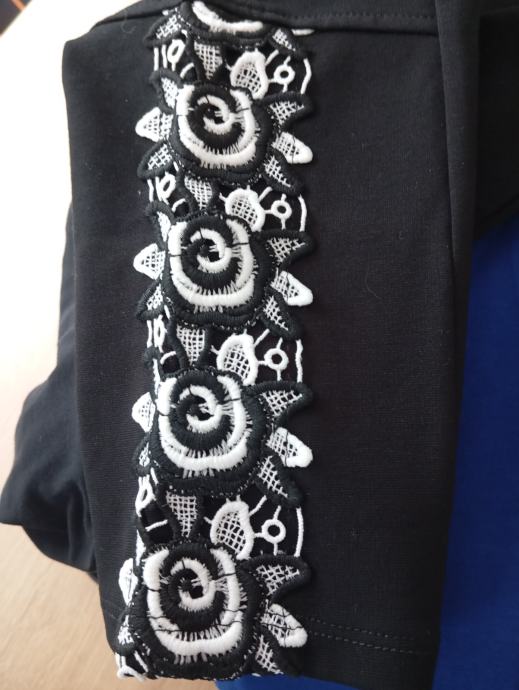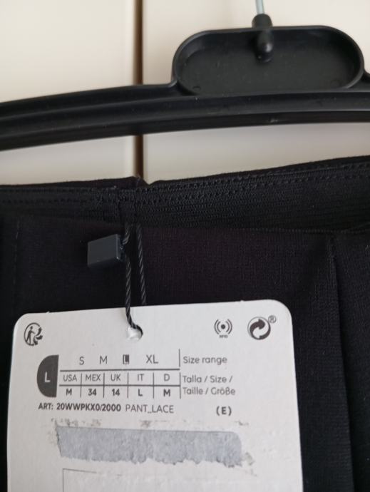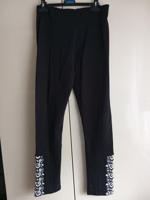 Nove z etiketo, zelo kompaktne in kvalitetne, raztegljive, z belo vezenino, v pasu imajo elastiko in merijo 36 do cca 45cm, od razkoraka do pasu je 30cm, dolžina je 96cm, ne menjam, ptt ni vključena v ceno