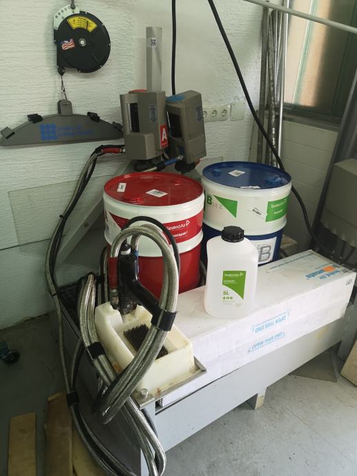 Dve črpalki, dozirni regulator, grelne cevi, mešalna pištola.