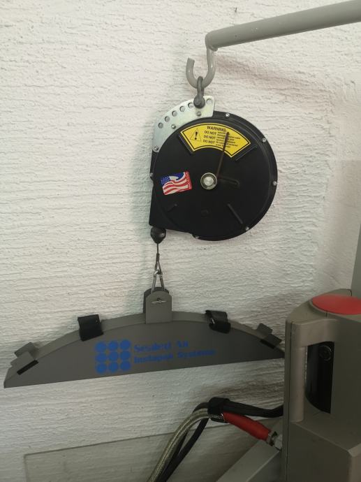 Stroj je v kompletu z varnostnim mrežnim lovilnim podstavkom, nosilno roko na kateri je raztezni boben za lažje rokovanje pri delu.