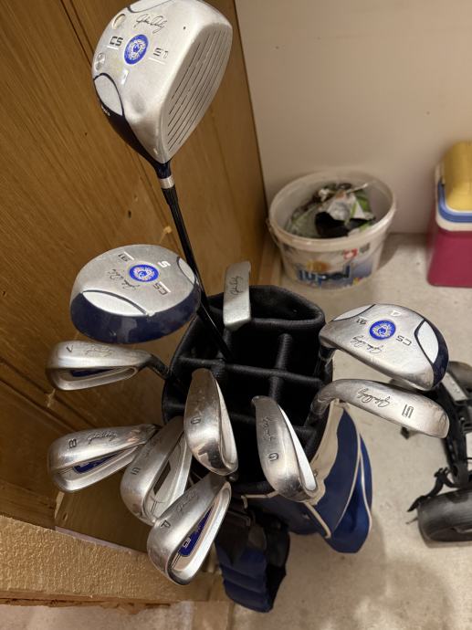 Prodajam set palic John Daly, železa 5-9, pw, sw, 4 hibrid, 5 les, driver. Zraven je še Ram torba in voziček z 2 kolesoma. Super set za začetnika.
