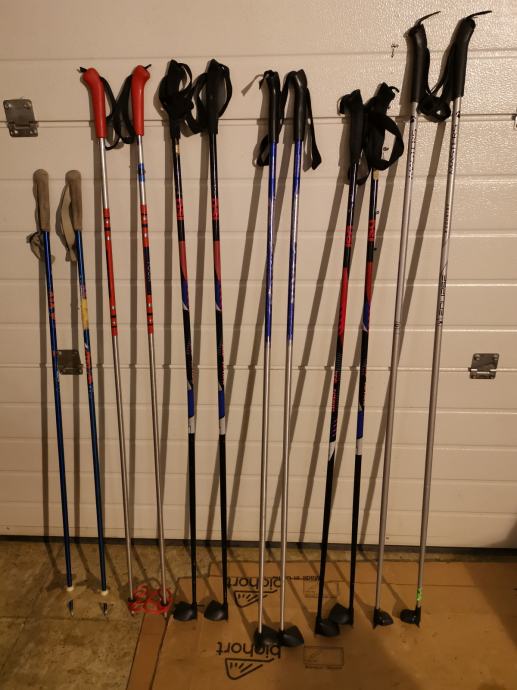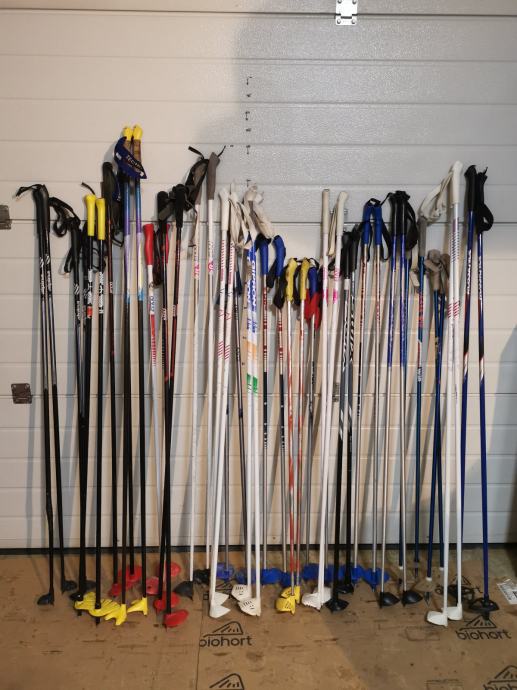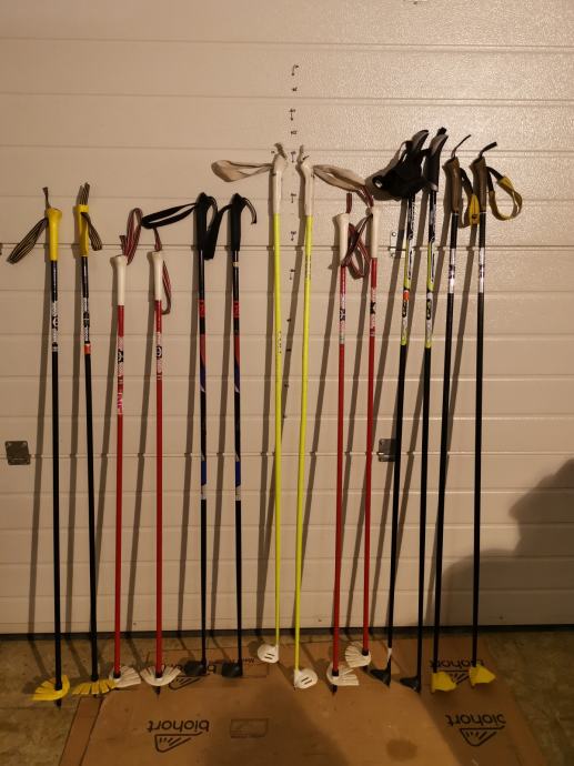 Palice za tek na smučeh nekaj kosov različnih velikosti.