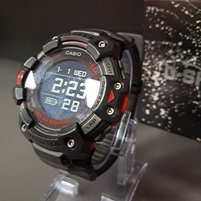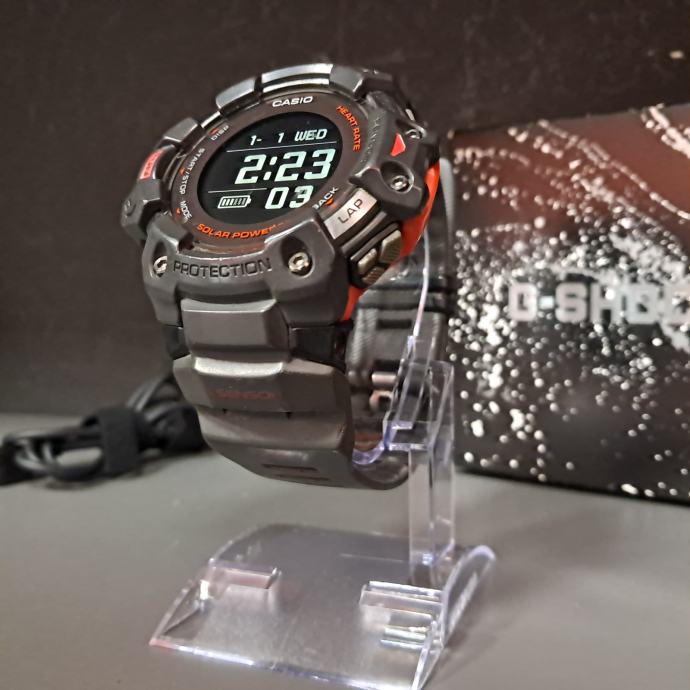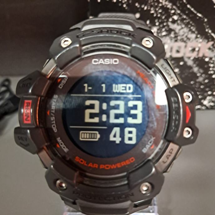 Na prodaju je zelo lepo ohranjena ročna ura Casio G-SHOCK GBD-H1000, ki je bila v uporabi le eno leto. Ta robustna ura iz linije G-SQUAD združuje edinstveno vzdržljivost G-SHOCK z naprednimi funkcijami za spremljanje telesne pripravljenosti, vključno z GPS-om, merjenjem srčnega utripa in sončnim polnjenjem. GBD-H1000 je idealna za aktivnosti na prostem in intenzivne vadbe, saj ponuja 5 senzorjev, med katerimi so optični merilnik srčnega utripa, GPS, merilnik pospeška ter okoljski senzorji (kompas, višinomer/barometer, termometer).