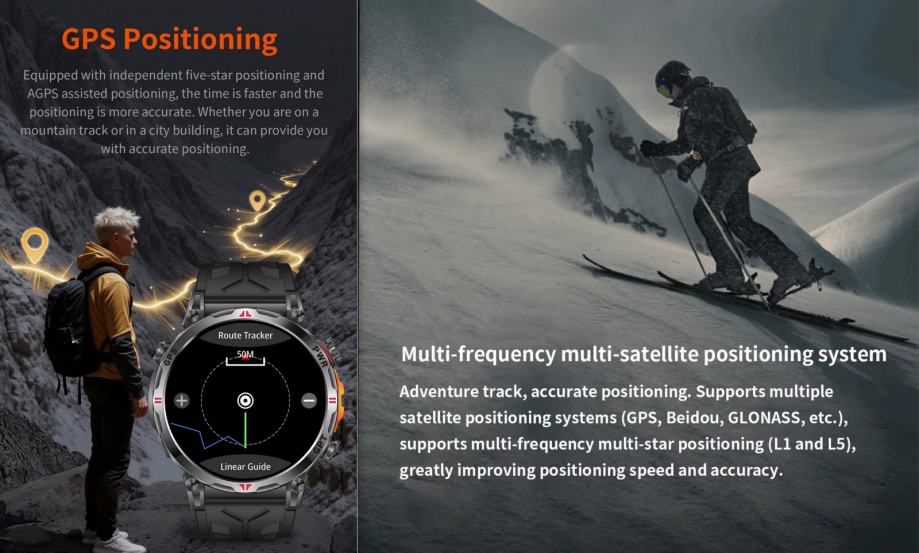 zaslon: 1,53 inch , 480x480 AMOLED ; barerija: 650mAh Li-polimer ; kompatibilnost: Android 4.4 , iOS9.0 ; ohišje: Zn alloy ; kvaliteta: MIL-STD 810H ; vodoodpornost: IP68