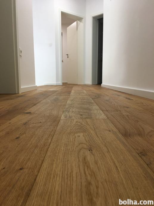 Večslojen kmečki pod HRAST primeren za talno gretje, dimenzije 14x190x1900mm, debelina zgornjega sloja 3,0mm rahlo ščetkan in 2x WOCA oljen.
