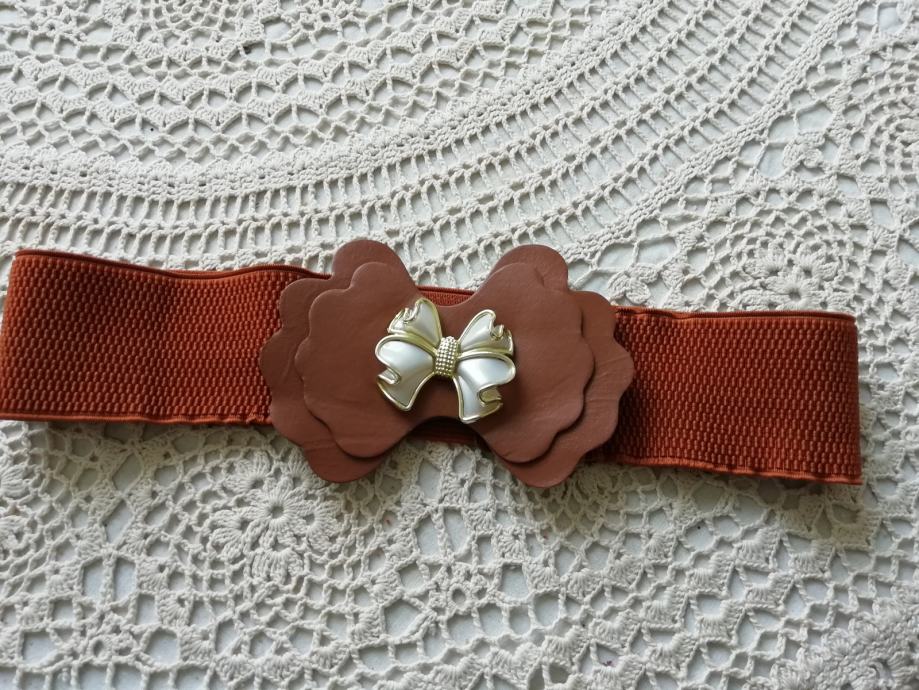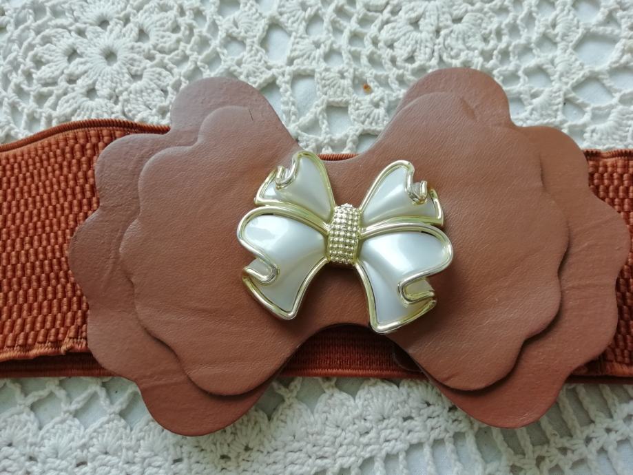 Kvaliteten elastičen pas šir. 6 cm, priponka iz naravnega usnja in pentljico s cirkončki,
