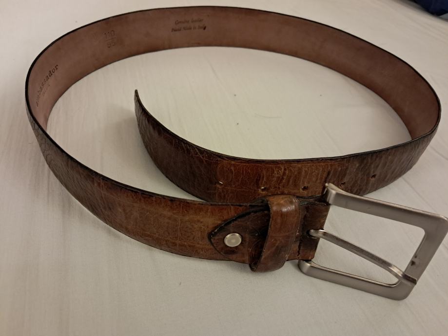 Prodajam kvaliteten italijanski usnjen pas Ambassador v temno rjavi barvi z elegantno kovinsko zaponko. Pas je velikosti 110/95 in je malo rabljen. Prevzem samo osebno, info na mobi.
