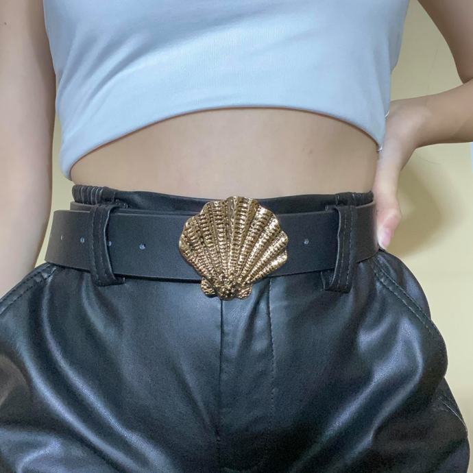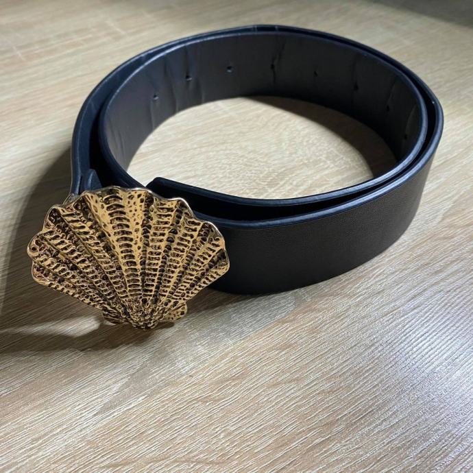 Črn pas s školjko v zlati barvi. Kot nov, nošen le enkrat.