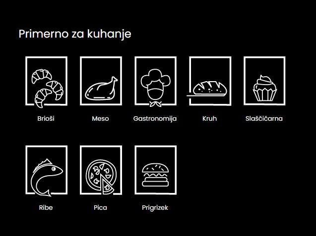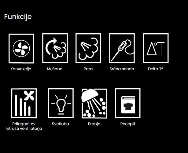 ▪ Konvekcijsko kuhanje s spremenljivo temperaturo od 30 do 280 ºC, 0 % vlažnosti