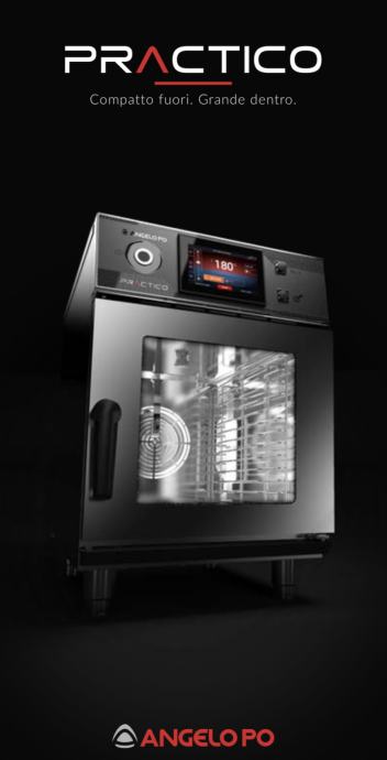 ANGELO PO PRACTICO je nova kombinirana pečica, ki vas z manj kot 52 cm vedno navduši: zaradi programov kuhanja in funkcij je še posebej vsestranska in zmogljiva; zaslon, velik in intuitiven, je enostaven za uporabo.
