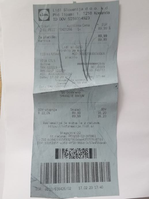 Prodam peč Ariete. Uporabljena 2 x. Kupljena 17.02.2023. Prodam zaradi neuporabe, ker sem takoj za tem kupil Cozze 13. Garancija 2 leti. Cena 70 eur.