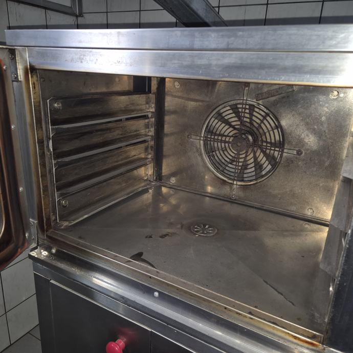 RABLJENA KONVEKCIJSKA PEČICA MORETTI FORNI S KOMORO, ZRAVEN DVA VOZIČKA-STOJALA Z INOX PEKAČI 40x60cm, PRIKLOP 380V, DELUJOĆE.