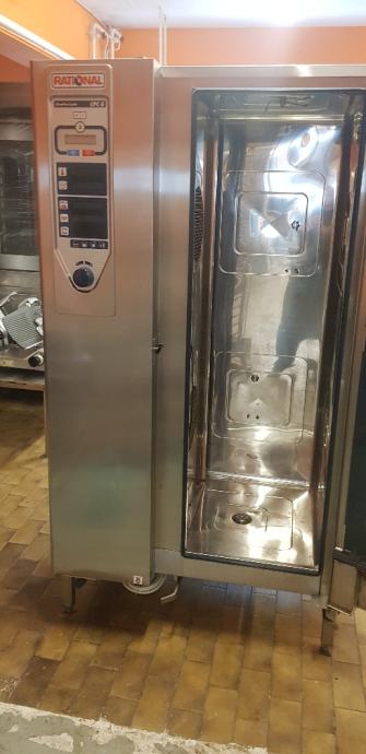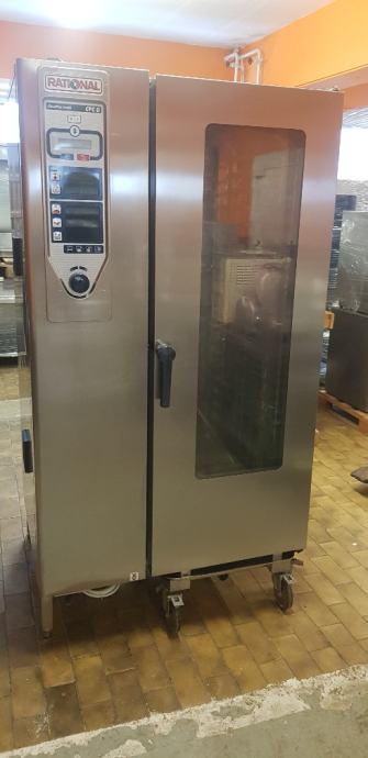 Plinsko Parno konvekcijsko peč Rational CPC 201, kapacitete 20xGN 1/1 za 150-300 obrokov, primeren za menze, družbene prehrane, hotele, večje gastronomske obrate, šole itd. V konvektomatu lahko pečete, cvrete, pečete na žaru, kuhate v pari, blanširate in še in še. Aparat je zelo dobro ohranjen, servisno pregledan, popolnoma brezhiben. Konvektomat je pripravljen za priklop na plinsko jeklenko oz plinohram. ( ni za mestni plin!) . Cena je zelo ugodna!