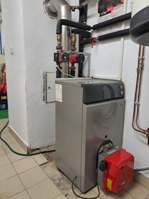 Zaradi vgradnje toplotne črpalke na prodaj deljujoča ravno odklopljena centralna kurilna naprava, proizvajalec Sime, model DR 4, Pnaz 28 kW z vgrajenim gorilnikom Riello, tip guiler, vrsta razprševalni - brezstopenjski.