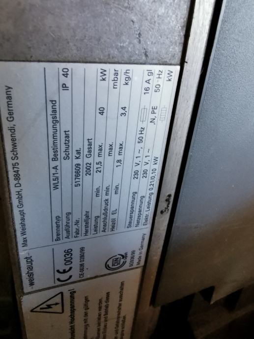 Gorilec: WEISHAUPT WL5/1-A 220V, 21,5-40kW Nov stane okrog 1.100€.