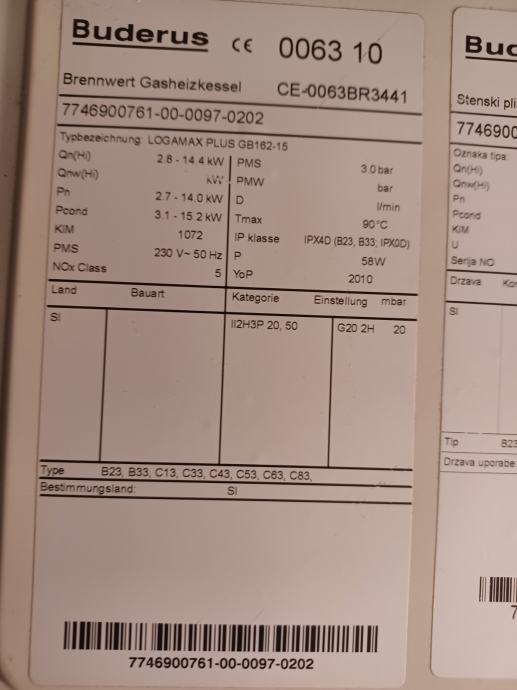 Prodam komplet kondenzacijsko peč Buderus in pripadajočo opremo, letnik 2010, vgrajeno 2011 in v uporabi od 2012, vse ohranjeno in delujoče, priložena navodila in vsa dokumentacija: