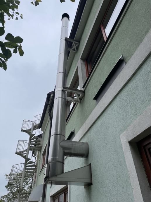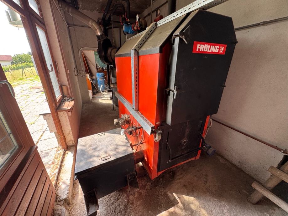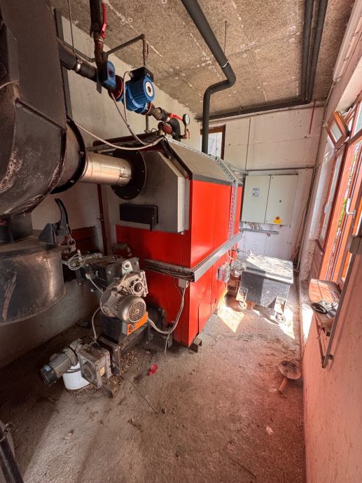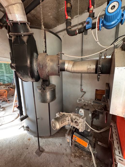 Naprodaj brezhibna peč na sekance Fröling. Zraven je zalogovnik tople vode (3000m3), odvzem sekancev (premer odvzema do 6m) in dimnik. Moč peči je 110 kW.