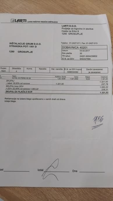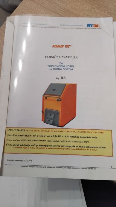 Zaradi prenove kurilnice konec januarja, bo na voljo centralna peč STADLER TVT, tip HS 26. Zraven spada čerpalka ter expanziska posoda.