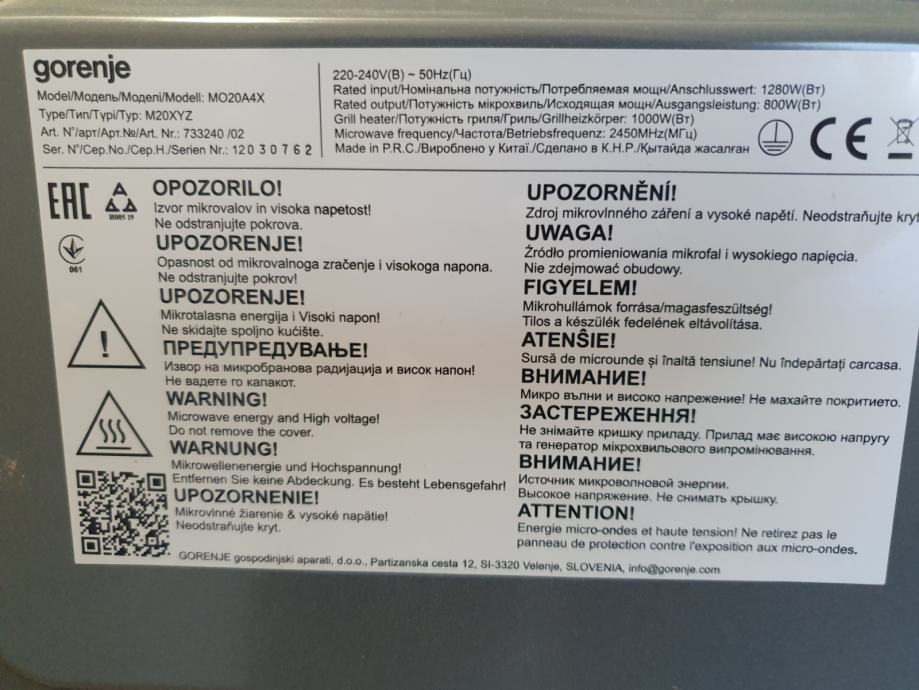 Prodam mikrovalovno pečico GORENJE MO20A4X. Pečica je stara 4 leta, je malo rabljena - kot nova. Ne deluje - okvarjen magnetron.