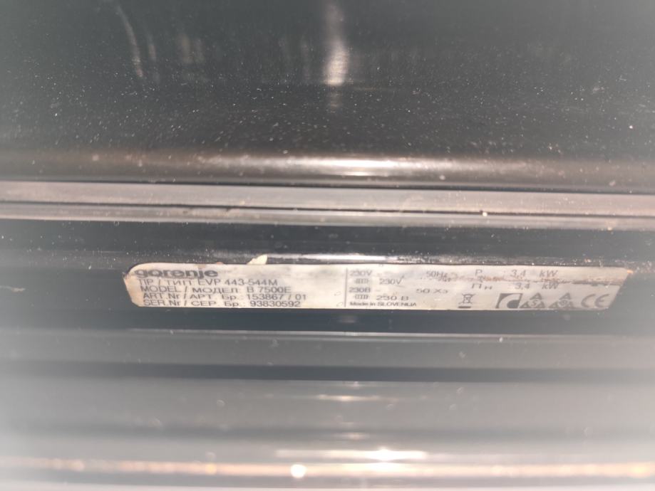 Prodam vgradno pečico Gorenje model B 7500E. Je standardne velikosti, rabljena in lepo ohranjena. Pekači so priloženi.