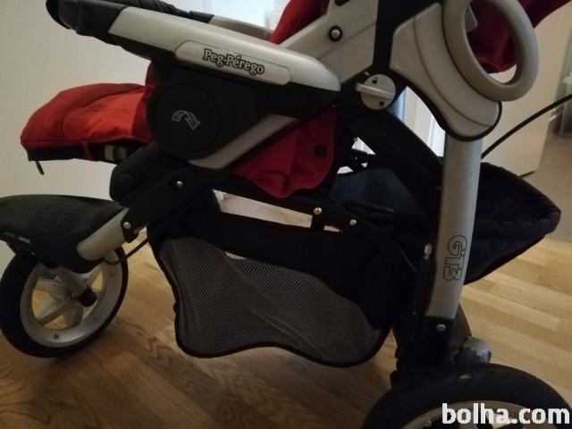 Prodam otroški voziček Peg Perego GT3, malo rabljen (1 otrok) in lepo ohranjen, rdeče barve, dodana torbica na ročaju, spodaj košara za odlaganje. Cena novega 520 eur. Pokličite za dodatne informacije.