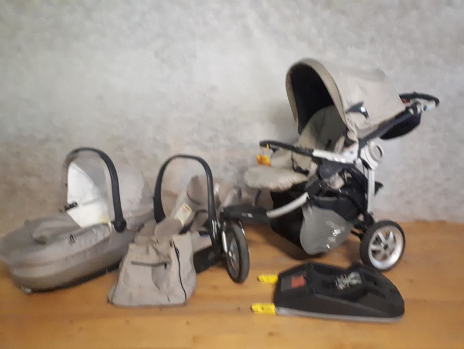 Prodam omenjeni modularni set (voziček, lupinca, košara in torba) in Pegperego izofix.