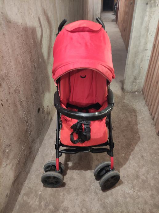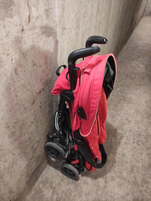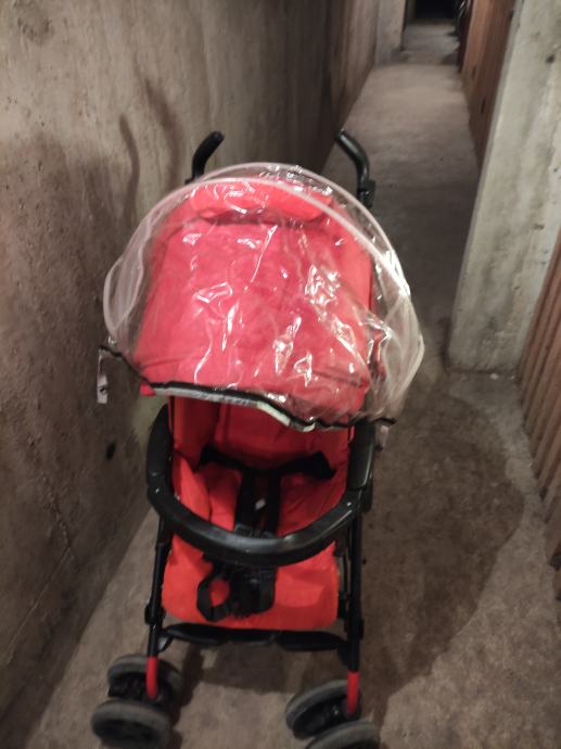 Prodam zložljiv voziček Peg Perego rdeče barve z spodnjo poličko in prevleko za dež. Voziček je lepo ohranjen.