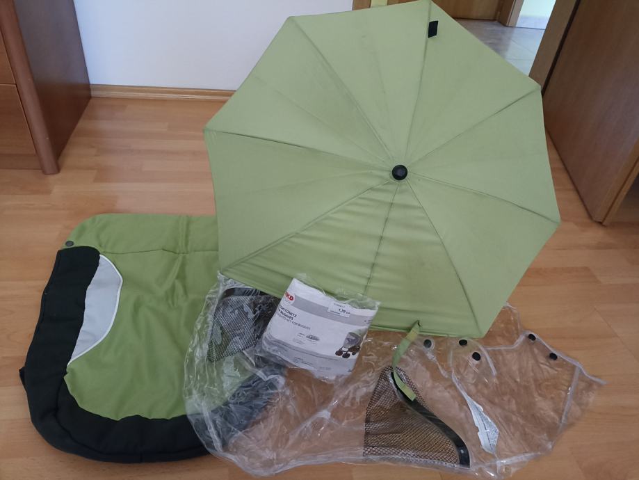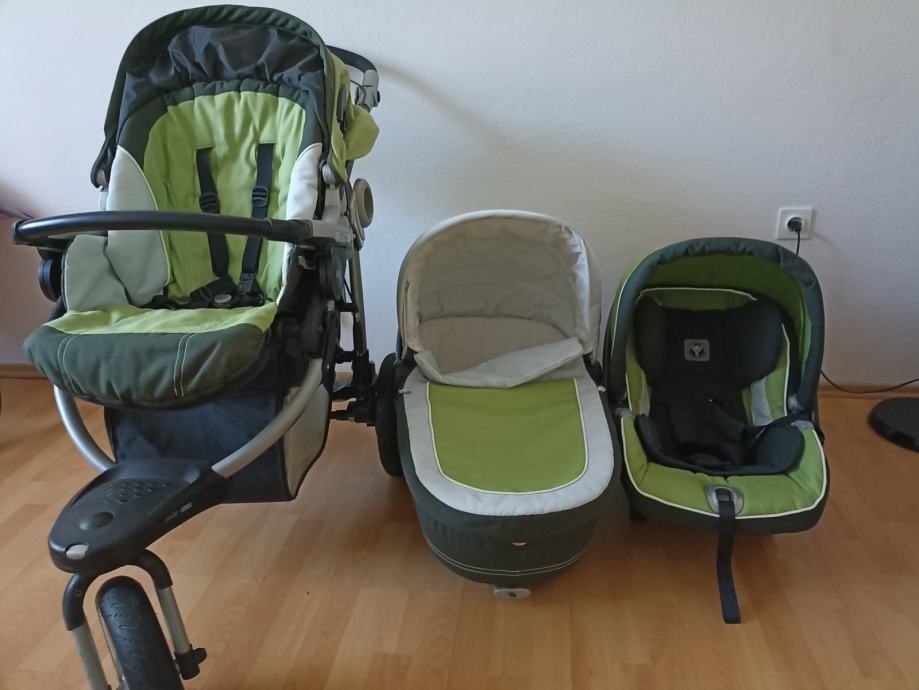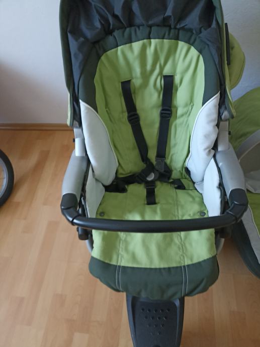 Prodam komplet vozicek peg Perego gt3,v zeleni barvi.V kompletu je košara,lupinica, športni del,zimska vreča,dežnik,dežno pokrivalo in komarnik.