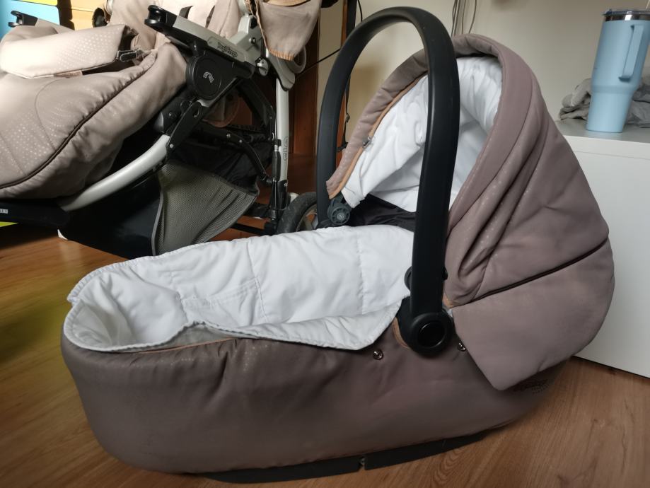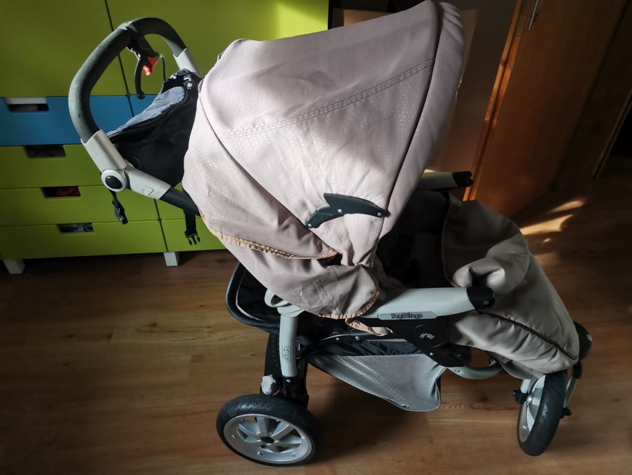 Prodam rabljen voziček Peg Perego GT3 2v1 (košara in športni del) v bež barvi. Voziček je dobro ohranjen in opran.