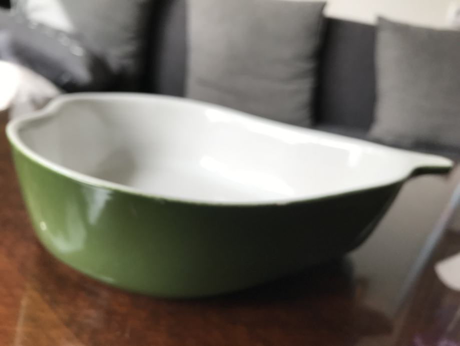Prodam zelen keramičen pekač v obliki hruške. Meri sta nekje 22 x 20 cm. Pekač ni bil nikoli uporabljen.