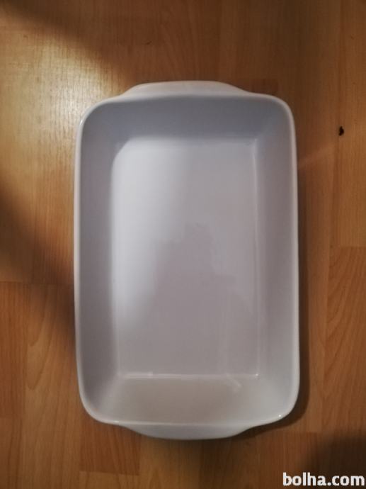 Pravokoten keramični pekač bele barve. Mere 30x20x6,5 cm. Nerabljen. Cena: 5 €