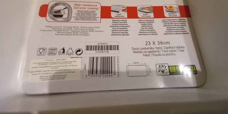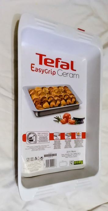 Prodajam nov kvadratni teflonski pekač znamke Tefal EasyGrip Ceram, ki je še neuporabljen. Pekač ima dimenzije 23 x 36 cm in je opremljen s posebno keramično prevleko za lažje pečenje brez prijemanja hrane. Odlična izbira za vse kuharje, ki iščejo kakovostno posodo za peko.