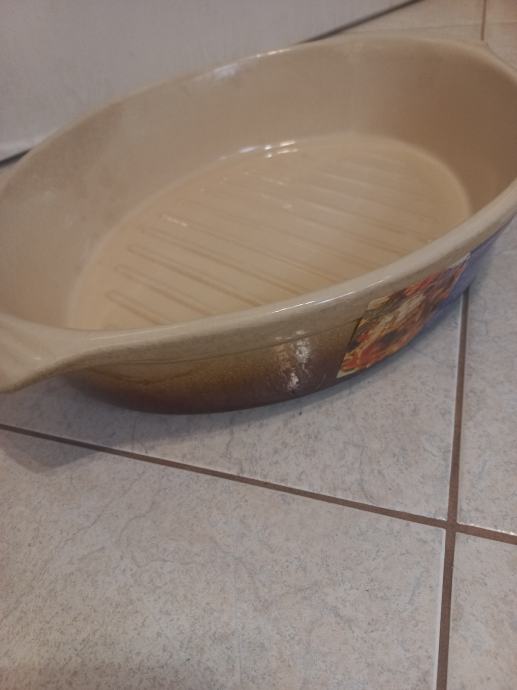 Glineni, ovalen pekač, nerabljen, 35 X 27 cm