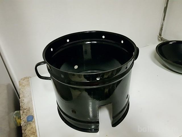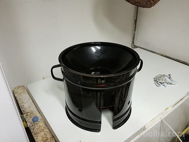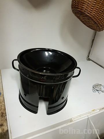 Nanj se vstavi lonec 32cm premera in visok 20cm. Drži cca 15l . V njem se lahko kuha enolončnice ali peče meso. Ima tudi pokrovko.