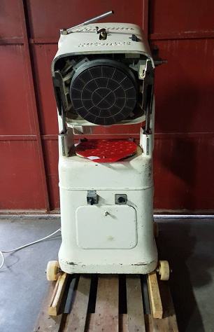 Nudimo Vam rabljen avtomatski delilnik-okrogljitelj testa FORTUNA model AUTOMAT na 30 delitev po 32-80 g, letnik 2000, 3×400 V, 50 Hz, z enim novim pladnjem. (slika 3, 4, 5)